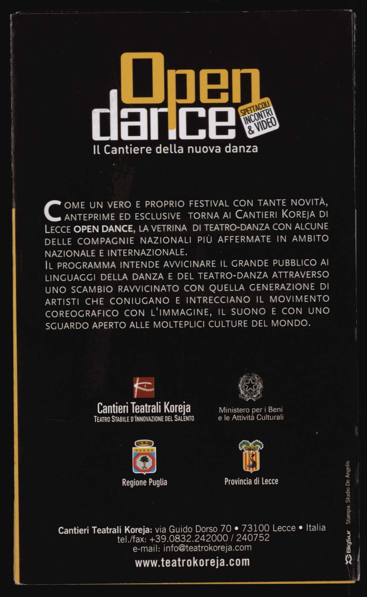 DESCRIZIONE Creatore: Cantieri Teatrali Koreja, Ministero per i Beni e le Attività Culturali, Regione Puglia, Provincia di Lecce Luogo dell'evento: Lecce – Cantieri Teatrali Koreja