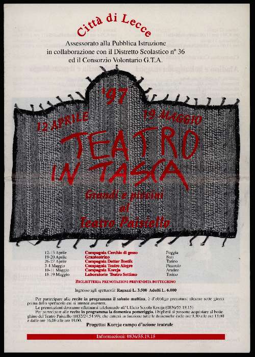 • Materiale spettacoli: dispense, copioni annotati e pieghevoli didattici.